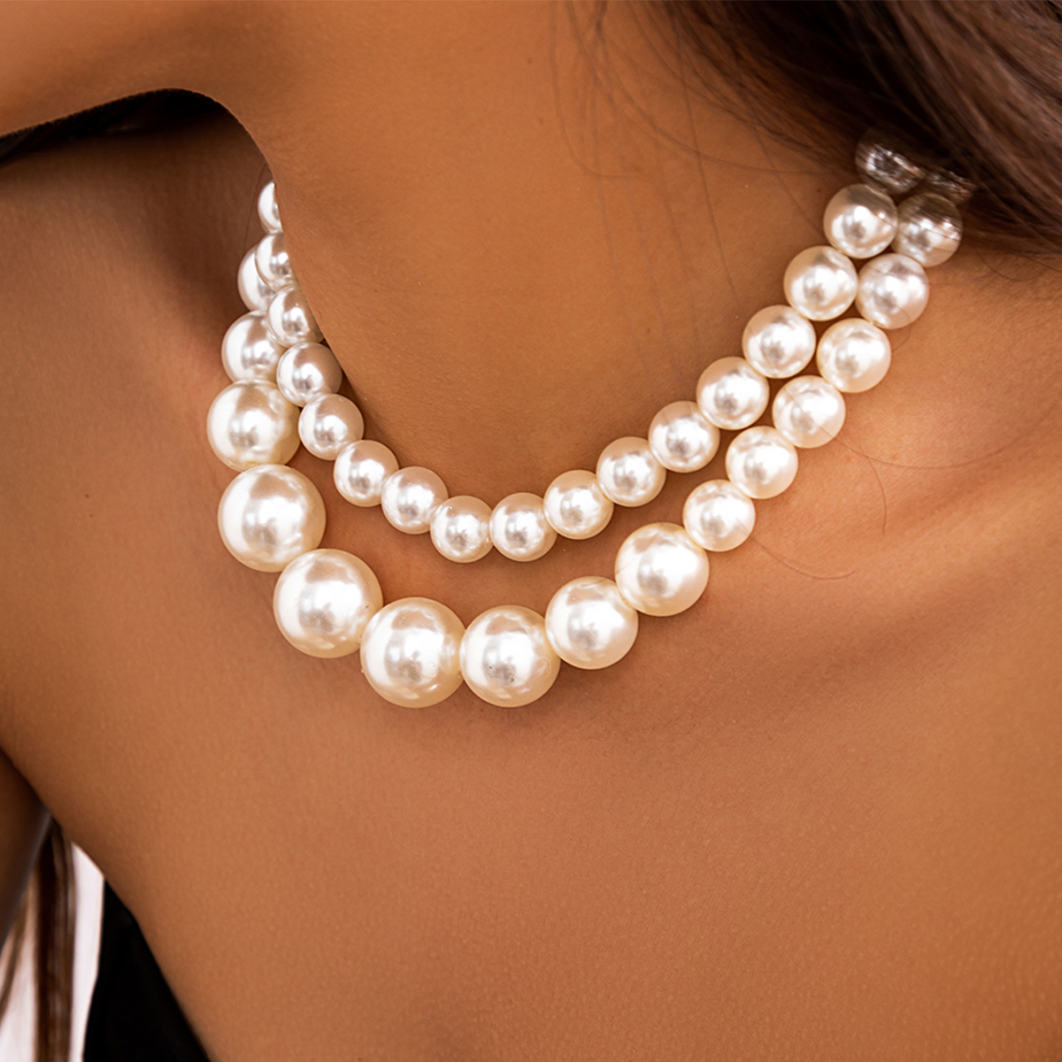 I came across the homepage of Sumsfashion while researching jewelry trends and found a necklace that immediately grabbed my attention: the 2Pcs/Set Luxury Elegant Big Imitation Pearl Choker Necklace.